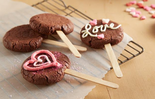 3. Roll 1/4 cup dough into ball; place on ungreased cookie sheet, 3 cookies per sheet. (Cookies spread while baking.) Insert wooden stick about three quarters of the way into side of each ball. Flatten slightly.