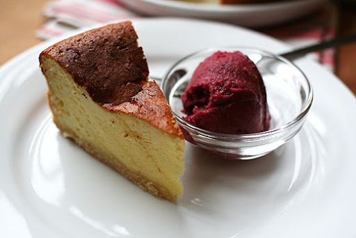 With the mixer—use the paddle attachment now, if you’ve got one—beat the egg yolks, goat cheese, the remaining 1/2 cup sugar, the cornstarch, and vanilla until very smooth and creamy, about a minute or two. Switch to a rubber spatula and stir one quarter of the whites into the mixture to lighten it, then gently fold in the rest of the whites. Scrape the batter into the crust and put the springform on the lined baking sheet.