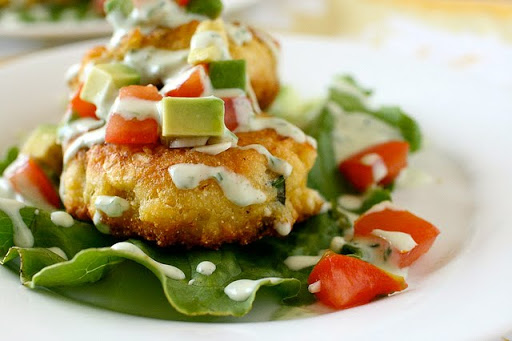Place a large skillet over medium heat. Add just enough oil to barely cover the bottom of the pan and heat until sizzling hot. Scoop the batter into the skillet a heaping tablespoon at a time, cooking the cakes in batches of 4 or 5 so that they are not touching. Fry 1-2 minutes per side, until golden brown. Transfer the cooked cakes to a wire rack and repeat with the remaining batter.