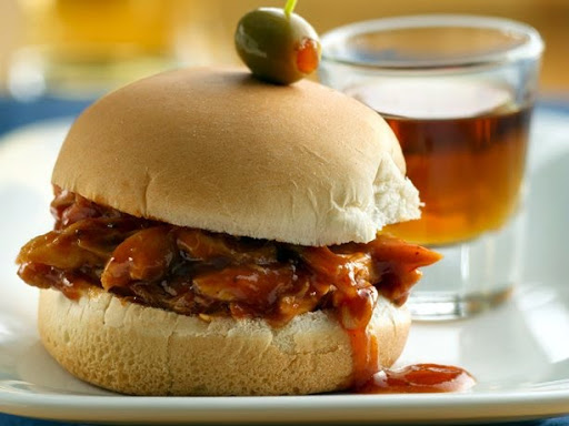 3 Place about 1/3 cup chicken mixture on bottom of each slider bun; top with bun top. Garnish each sandwich with green olive. Serve with remaining sauce.