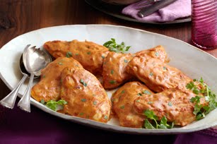BAKE 40 min. or until chicken is done (170ºF). Serve chicken topped with sauce and cilantro.