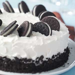 For frosting, beat the shortening, sugar, milk and vanilla in another large bowl until smooth. Spread frosting between layers and over top and sides of cake. Decorate the top with cookies and the sides with crushed cookies if desired.