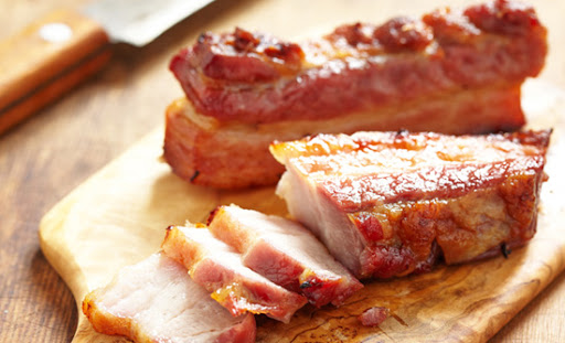 Remove the bellies from the bags, rinse off the cure, and pat dry.