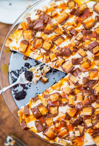 No-Bake Deep-Dish Peanut Butter Snickers Pie with Salted Caramel