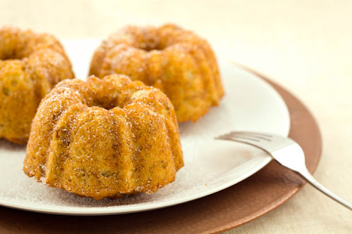 Makes 16 mini bundt cakes. (Note: if you were to use a mini muffin tin, you’d probably end up with double the number of cakes, and therefore each cake would have about 50 calories)