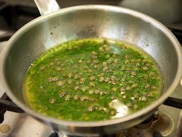 Stir in the parsley, capers, and season with salt, and pepper. Serve over grilled vegetables.