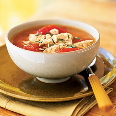 2. Purée the soup with a hand blender if necessary, but leave it on the chunky side.