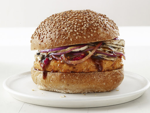 Warm the hamburger buns in the oven. Serve the burgers on the buns with a drizzle of the hoisin-sambal sauce and some of the mushroom mixture.