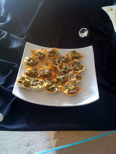 Right before serving, add the avocado and lime juice. (Do not mix in advance) Place a heaping teaspoon of the tuna mixture on each wonton triangle. Garnish with a sprig of cilantro.