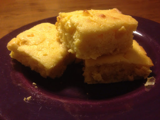 Bake until lightly golden brown on top. Cut into squares to serve.