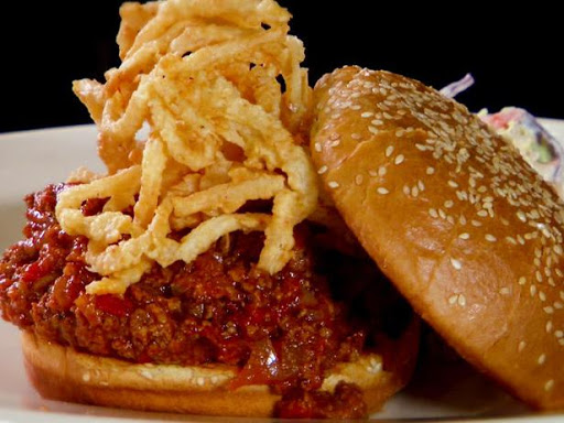 Serve the sloppy joes on the toasted rolls and top with onion straws.