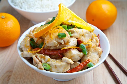 Add the orange mixture, the chicken and the orange zest and cook until it thickens, a few minutes.