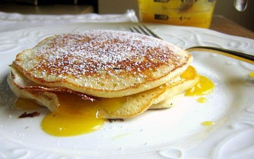 Heat a large non-stick griddle over medium heat and add a little butter. Cook a few pancakes at a time using a measuring cup to pour out batter. The trick to perfect round pancakes is to carefully pour all the batter in the same spot and let it roll out to a complete circle. Cook the pancakes on one side until they are set. When small bubbles appear on the uncooked surface, flip the pancakes and cook until golden on both sides, about 6 minutes. Keep pancakes on a plate set at the back of the stove under a dry towel to keep warm while you cook the rest.