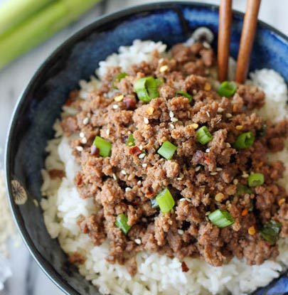 Heat vegetable oil in a large skillet over medium high heat. Add garlic and cook, stirring constantly, until fragrant, about 1 minute. Add ground beef and cook until browned, about 3-5 minutes, making sure to crumble the beef as it cooks; drain excess fat. Stir in soy sauce mixture and green onions until well combined, allowing to simmer until heated through, about 2 minutes.