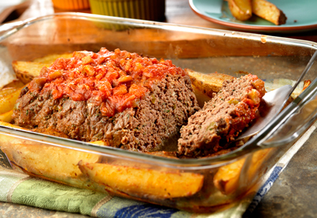 MEATLOAF WITH ROASTED GARLIC POTATOES