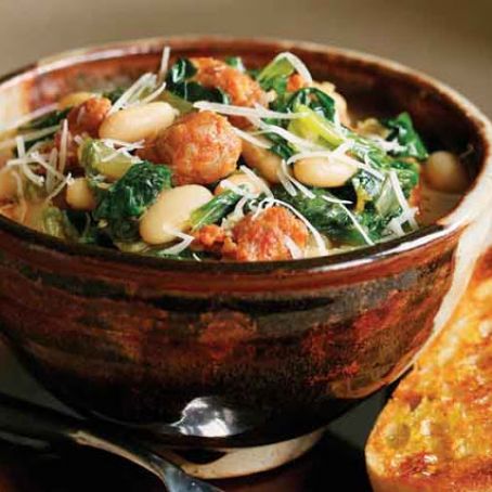 When all the escarole is in, add the chicken broth, cover the pot, and cook until the beans are heated through and the escarole is tender, about 8 minutes. Season to taste with the vinegar and salt. Transfer to bowls and sprinkle each portion with some of the Parmigiano.