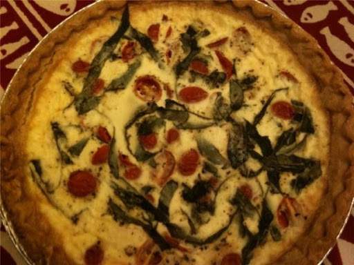 Preheat ove to 350. On lightly floured surface, with floured rolling pin roll dough into a 13" round, Ease dough round into deep 10" quiche plate; gently press against bottom and upside of pan without stretching. Trim edges of dough. Freeze 15 minutes. Line quiche shell with foil and fill with pie weights, dried beans or uncooked rice. Bake 15 minutes or until golden brown. Place crust on sheet pan.