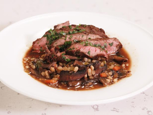 Sliced Steak and Mushroom Barley Soup (Rachael Ray)