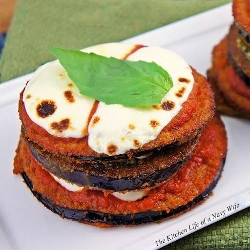 3. Sprinkle with roughly 2 tablespoons of shredded mozzarella and place another eggplant cutlet on top of the cheese.