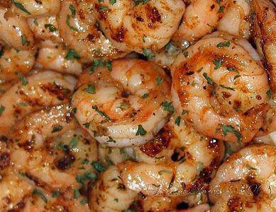 Continue to add butter and shake until all butter is melted. Add shrimp back to pan and toss well to coat shrimp with butter and seasonings and to heat the shrimp. Place shrimp on four plates and enjoy.