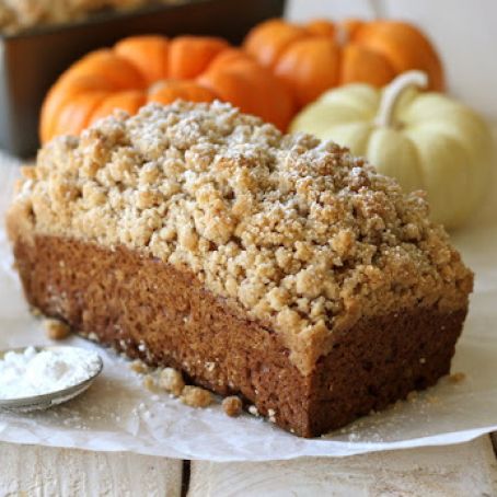 Preheat the oven to 350 degrees F. Lightly coat three 5 3/4-inch mini loaf pans with nonstick spray. To make the crumb topping, combine flour, sugars, pumpkin pie spice and butter; set aside.
