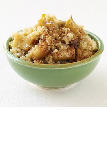 Rinse and drain quinoa. Add quinoa and 2 cups of cold water to a medium saucepan and bring to a boil over medium-high heat; boil for 1 minute. Reduce heat to low, cover pan tightly and allow quinoa to simmer for 10 minutes. When quinoa is cooked (a little tail will appear on each grain), remove from heat and fluff with a fork. Add remaining 1/2 tablespoon butter, cinnamon, sugar and milk; stir to combine and fold in apples. Garnish with cinnamon, if desired.