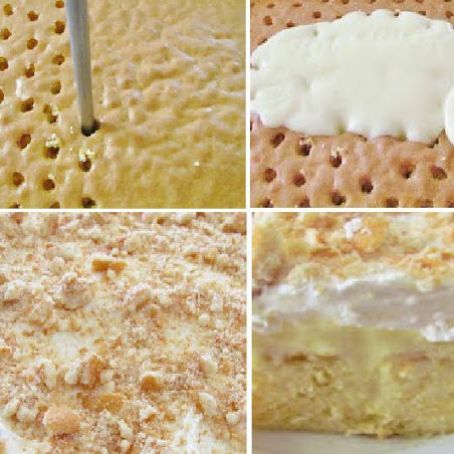 Remove from oven and poke holes with a wooden spoon in warm cake. Mix together banana pudding and milk. Pour banana pudding over cake. Allow cake to cool overnight, covered.