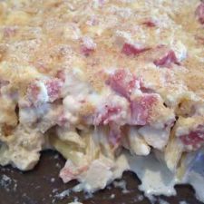 This Cheesy Chicken Spaghetti Casserole is great for a potluck dish. It can be made ahead of time and frozen or refrigerated. Taste great reheated for lunch or dinner the next day.