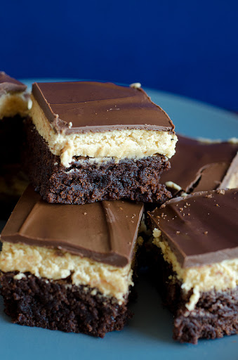Place the chocolate chips and peanut butter in a microwave-safe bowl. Heat in the microwave at 50% power until completely melted, stirring every 30 seconds. Using a spatula, evenly spread the chocolate mixture over the peanut butter filling. Cover with foil and refrigerate until set, about 1 hour.