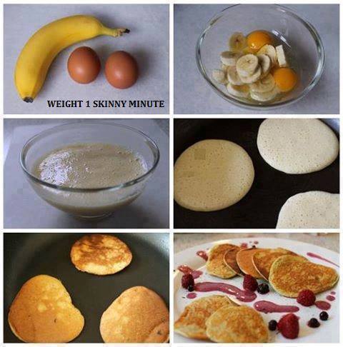 Just mix together in a bowl and make sure the banana is all mashed. Then spray your pan with some "spray & cook" or coconut oil. On a low to medium heat, scoop some of the batter into the pan & give it about 20-30 sec, flip, and done! Serve and eat!