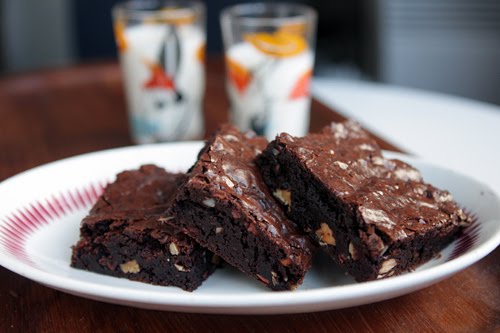 Troubleshooting: If the finished brownies are crumbly, that means you didn’t beat the batter long enough in step #4. You can use the brownie bits to fold into just-churned ice cream.