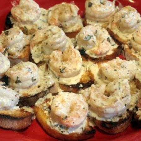 Plate the bread toasts and top with 1 shrimp each. Drizzle sauce generously over shrimp and bread.