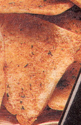 Preheat oven to 400F. In small bowl, combine first 6 ingredients. Cut each pita bread in half; spread each half with margarine mixture, ten cut each into quarters. Place on baking sheet; bake 3-5 minutes until browned and crisp.