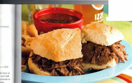 Remove beef from slow cooker, reserving broth. bred beef with 2 forks. Spoon beef evenly over toasted rolls, and serve with reserved broth.