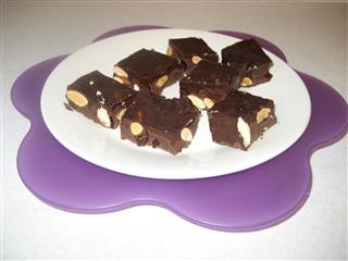8. Remove the Fudge from the freezer. Use the foil to lift the Fudge out of the dish. Using a sharp knife, slice the Fudge into 1 inch pieces.