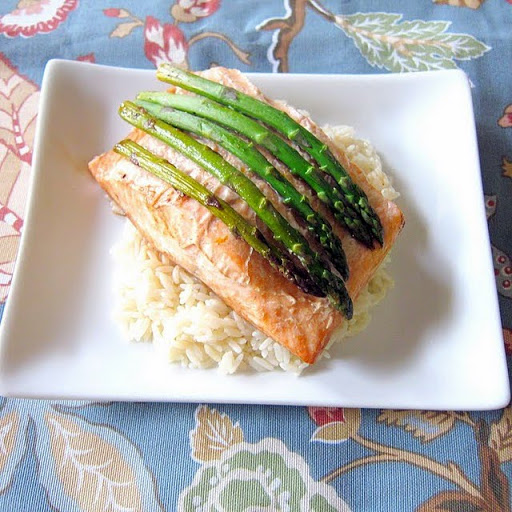Place parchment packets onto a baking sheet and bake for 15 minutes or until salmon is solid and firm and asparaus is cooked through but al dente. Serve with rice, couscous, or quinoa.