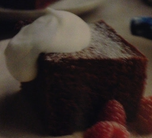 Whisk flour, granulated sugar, cocoa, espresso powder, baking soda and salt in bowl. With spoon make a 4 inch well in center and add oil, vinegar and vanilla. Whisk sour cream and water in small bowl, pour over entire mixture. Stir well until smooth. Bake until toothpick inserted in center of cake comes out clean, about 25-30 minutes. Cool in pan for 10 minutes. Serve warm sprinkled with confectioner's sugar.