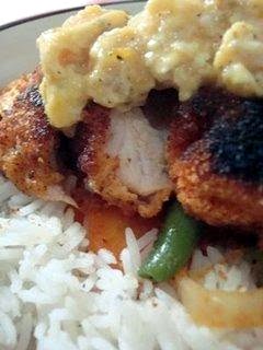 3) Dish rice up. Place some saute vegetables on it followed by sliced chicken cutlets.