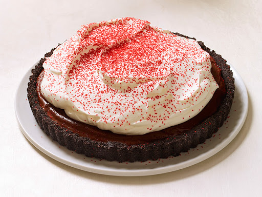 Right before serving, beat the heavy cream, confectioners' sugar and peppermint extract in a medium bowl with a mixer on medium speed until soft peaks form. Spread the whipped cream on the tart and sprinkle with sanding sugar.