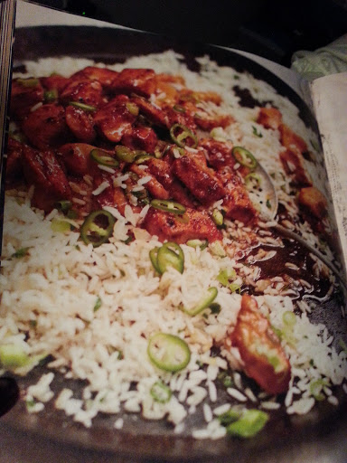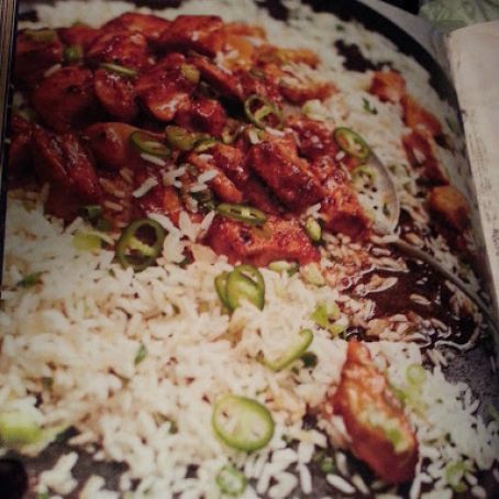 spoon the rice onto serving plates, then top with the chicken and any juices, scatter with chile if using and serve immediatly