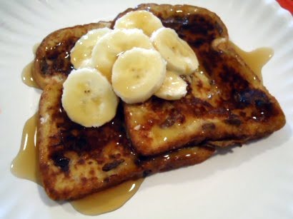 4. Serve with butter and syrup or do what I do and slice some bananas over the hot toast and top with syrup.