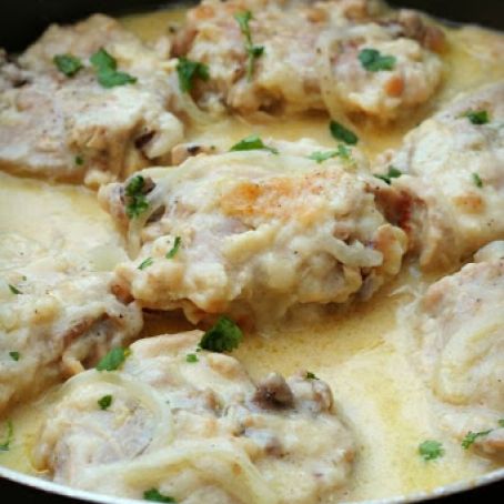 Add chicken broth, lemon, cream and onions or mushrooms if desired. Cover and simmer for about 30 minutes or so, until meat is tender.