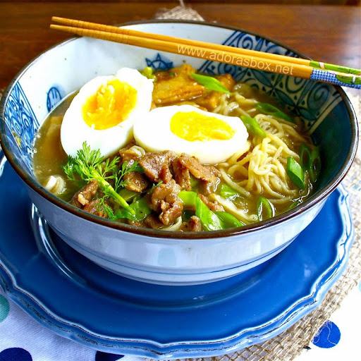 To assemble, divide the cooked noodles into four individual bowls. Top with the spring onions and the fish cakes or balls. Ladle the soup on top of the noodles. Top with the cooked pork and cabbage and halved boiled eggs. Serve hot. Need I say enjoy? Of, course you would.