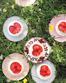 Pipe the poppies: Transfer one-quarter of the buttercream to a bowl (reserve remainder for frosting cupcakes), and tint with food coloring until you reach desired color for poppies. Transfer to a pastry bag fitted with a large petal tip. Cut out twenty 2-by-3-inch rectangles of parchment. Adhere 1 parchment rectangle to a flower nail with a dab of buttercream. Holding the piping bag at a 45-degree angle, pipe 1 petal. Pipe a second petal, overlapping the first by 1/2 to 3/4 inch. Making a tighter turn with the nail, overlap the second petal to pipe a third.