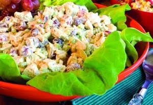 2.In a separate bowl, combine the dressing ingredients, mixing well. Add to the chicken mixture and stir gently to combine. Taste and add salt to salad, if desired.