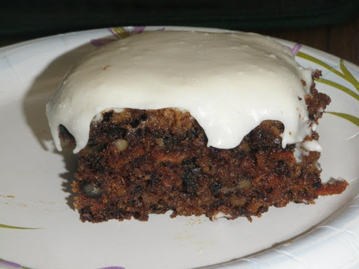 FROSTING: Beat together powdered sugar, cream cheese, vanilla, butter and milk; spread on cooled carrot cake.