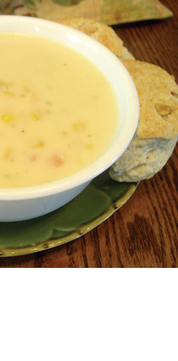 3. Stir in the half and half and both cans of undrained corn. Cook uncovered for six to eight minutes. Stir in the ham or bacon (if you are using these) and the parsley. Reheat if necessary.