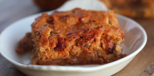 Place in oven and bake for 1 hour or until the top of the mixture forms a slight crust that doesn’t give when you press on it in the middle of the dish.