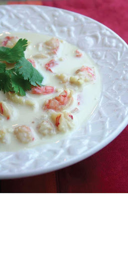 3. Add the cornstarch to a cup and then add a small amount of the soup dissolving it and stirring it with a spoon to make a paste. Add more liquid and stir until it is thinned to a sauce. Whisk the sauce back into the soup. Add the shrimp. Continue cooking until it starts to bubble and is smooth and thickened. The shrimp should have turned red. Add the cream.