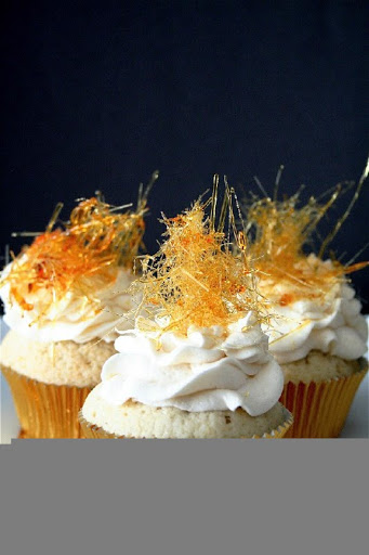 24. Garnish the cupcakes with the spun sugar.